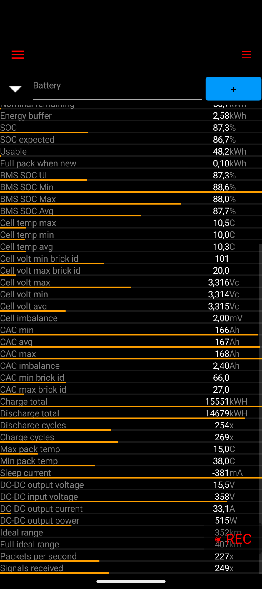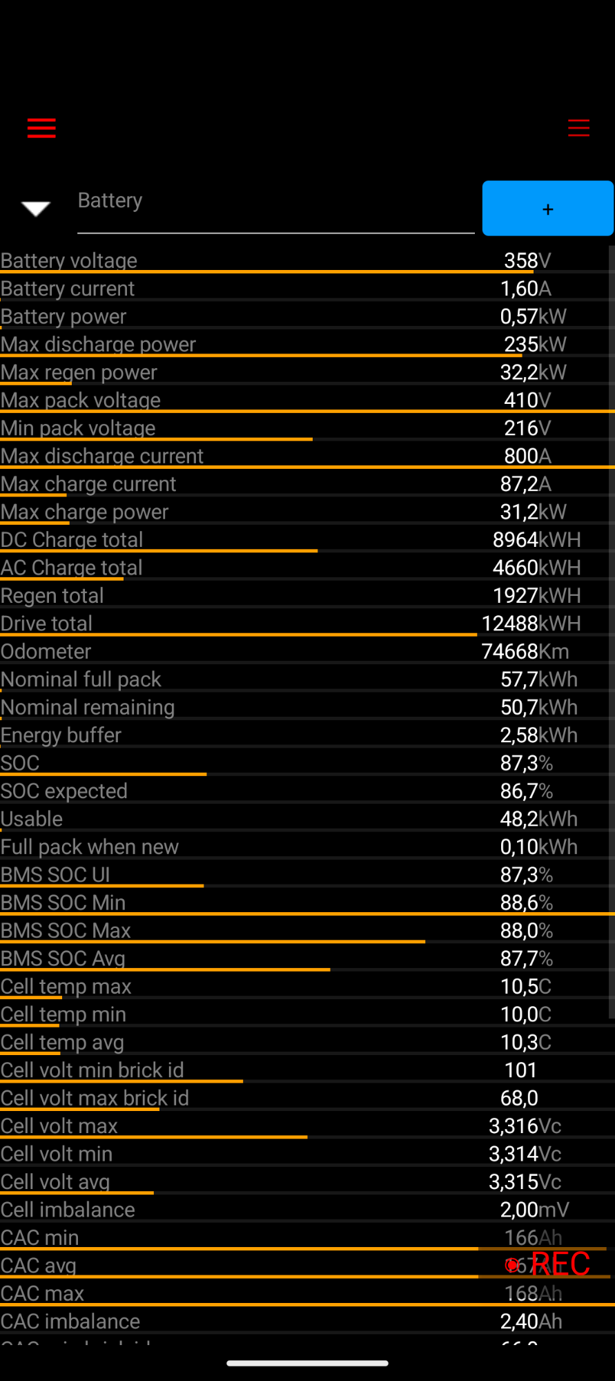 Batterie LFP en exellent état. Capacité mesuré via Scan my Tesla ( capture d'ecran dans la galerie) : 57.7 kWH, soit un état de santé estimé entre 97 et 100 % par rapport à la capacité d'origine. Ce qui temoigne d'une utilisation soigneuse et conforme aux recommandations Tesla. Un vrai point fort pour une utilisation sereine sur le long terme.